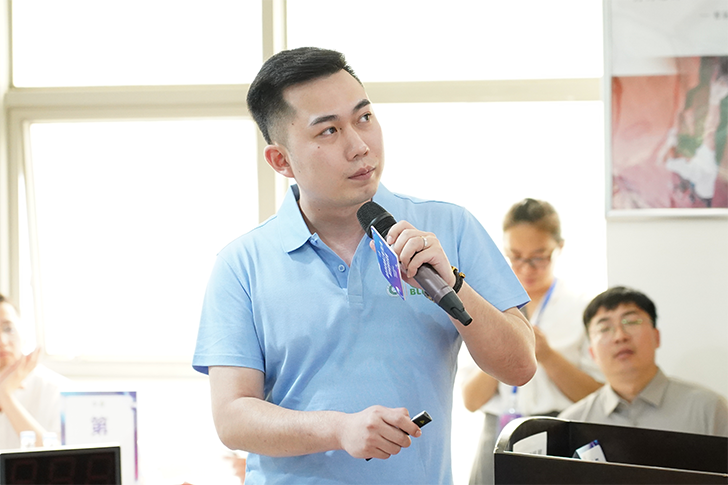 完美(中国)体育官方网站医学经理陈红梅介绍比赛所选用的血液透析设备D800系列