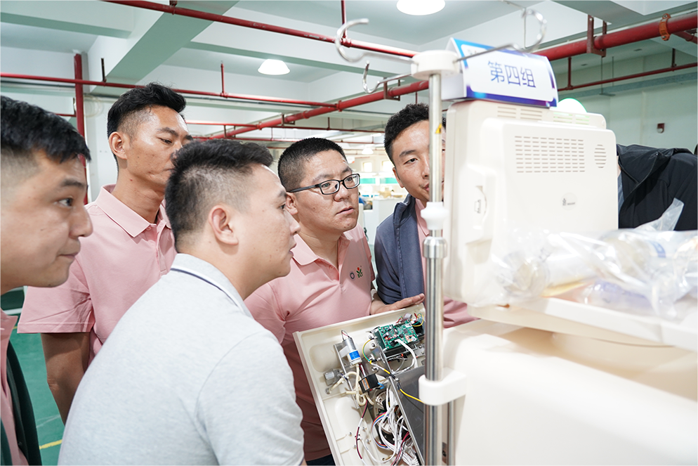 选手们在完美(中国)体育官方网站血液净化设备测试车间实地观摩