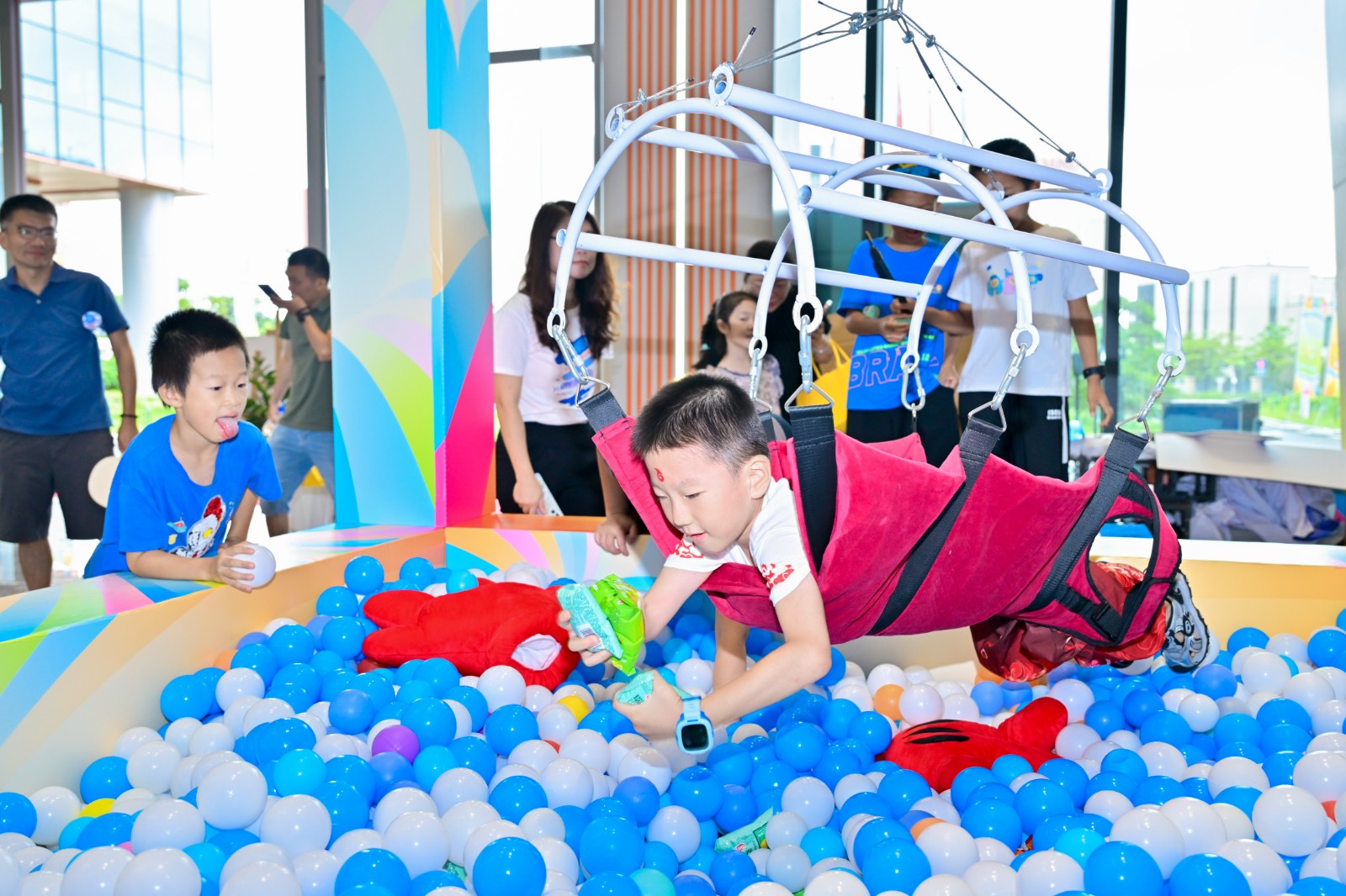 典礼的荣光未散,科技园已切换为温情的共生图景。一楼的亲子游园会上,非遗漆扇DIY的墨色在纱面晕开文化传承,真人娃娃机中的欢声诠释着“聚光向WE来”的深意——“WE”既是员工家庭的小单元,亦是医患同心、产业协力的宏大叙事。孩子们紧握集章卡兑换伴手礼的笑靥,恰似企业温度最轻盈的注脚。